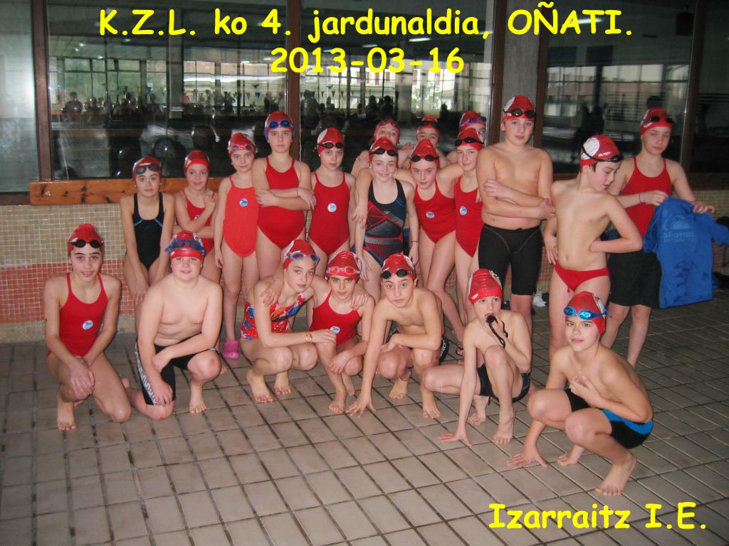 Izarraitz IE ko gaztetxoak, beste behin ere igeri egiteko estilo eta teknika bikainak erakutsi zituzten eta astean zehar entrenamenduetan ikasitakoa arro erakutsi zuten Oñatiko Zubikoa Igerilekuan. Aipatu beharra dago gero eta adiskidetasun eta lagun arte sendoagoa dutela nahiz eta ikastetxe desberdinekoak izan gure igerilari gazte hauek. Horrek, talde giro jator bat dagoela adierazten digu.