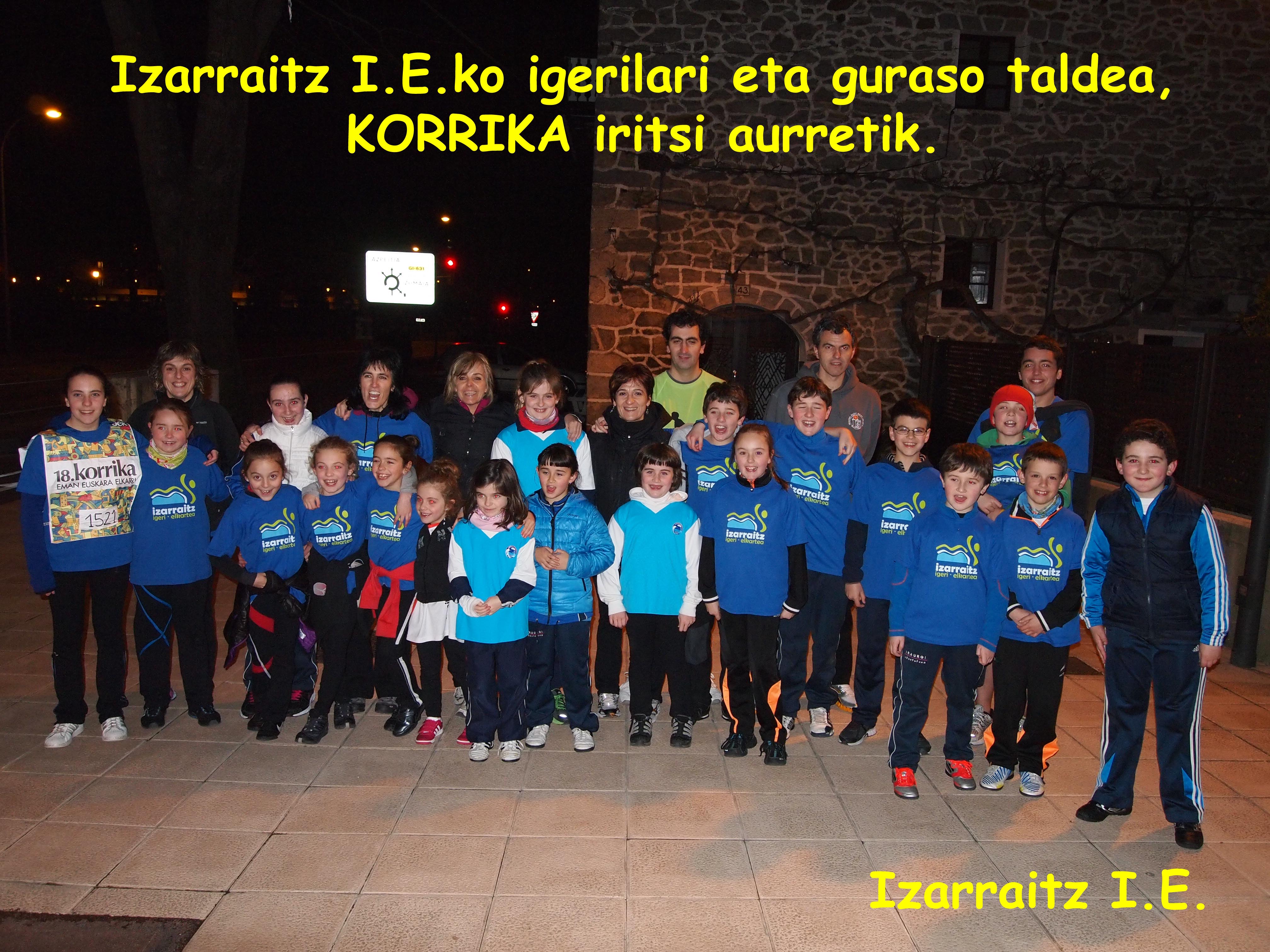 Gau hotza, baina igerilari eta guraso taldea animoz beteta egon ginen Etxe-beltz baserri ondoan KORRIKAren zai, lekukoa hartzeko.