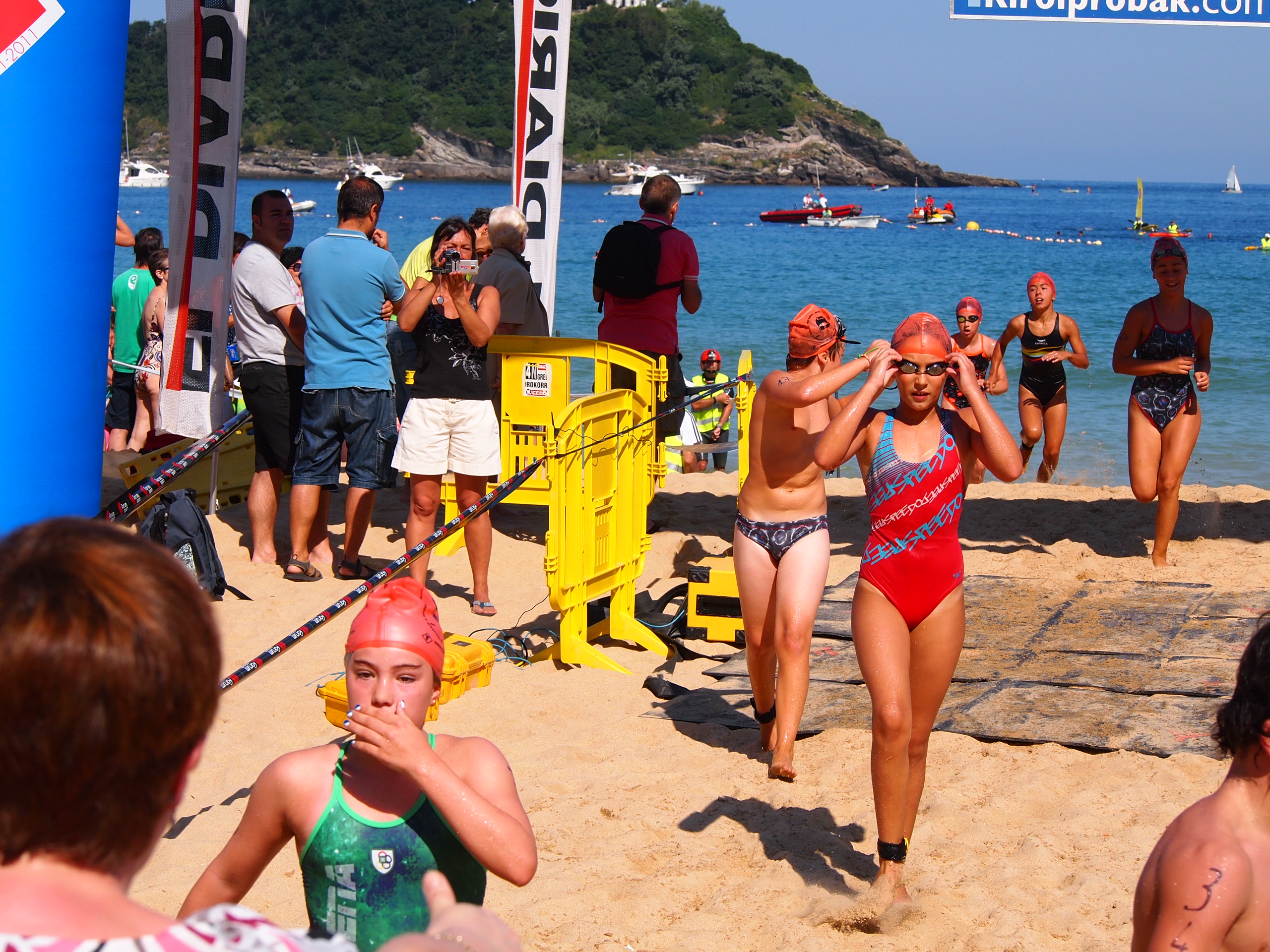 Aurrenik, 11:00etan, infantil mailako 70 igerilariek irten ziren Donostiako portutik, 650 metroko luzera zuen igerialdia egiteko. Gure taldetik, igerilari bakar batek hartu zuten parte, Maialen Sudupe. Itsas zeharkaldien denboraldia aurrera doan bezala, Maialen, gero eta hobeto moldatzen da igeriketa mota honetan. Atzo, 41. postua lortu zuen.