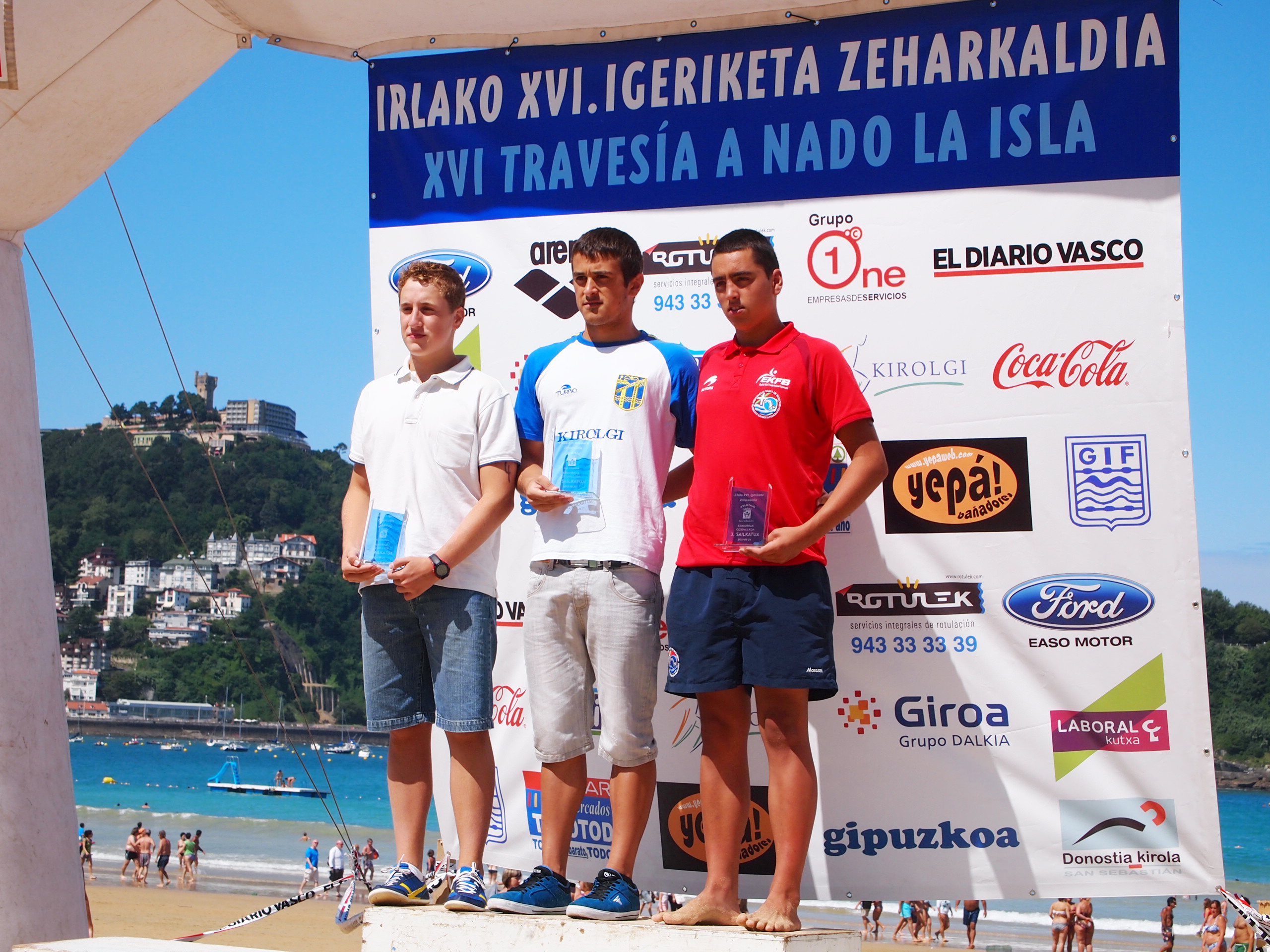Ondoren, 11:15etan, 15 minutuko atzerapenarekin, hasi zen helduen zeharkaldia leku berdinetik. Ia 400 igerilari ordu horretarako prest zeuden Atletiko San Sebastianen egoitzaren ondoan. Helmuga, hondartzako toki berdinean zegoen, eta guztira 3.000 metro egin behar izan zuten igerilariak, Santa Klarako irla zeharkatuz. Izarraitzetik igerilari batek hartu zuen parte, Pablo Etxeberria, eta postu ona lortu zuen. Pablo, seigarren postuan iritsi zen hondartzara, senior sailkapenean 3.