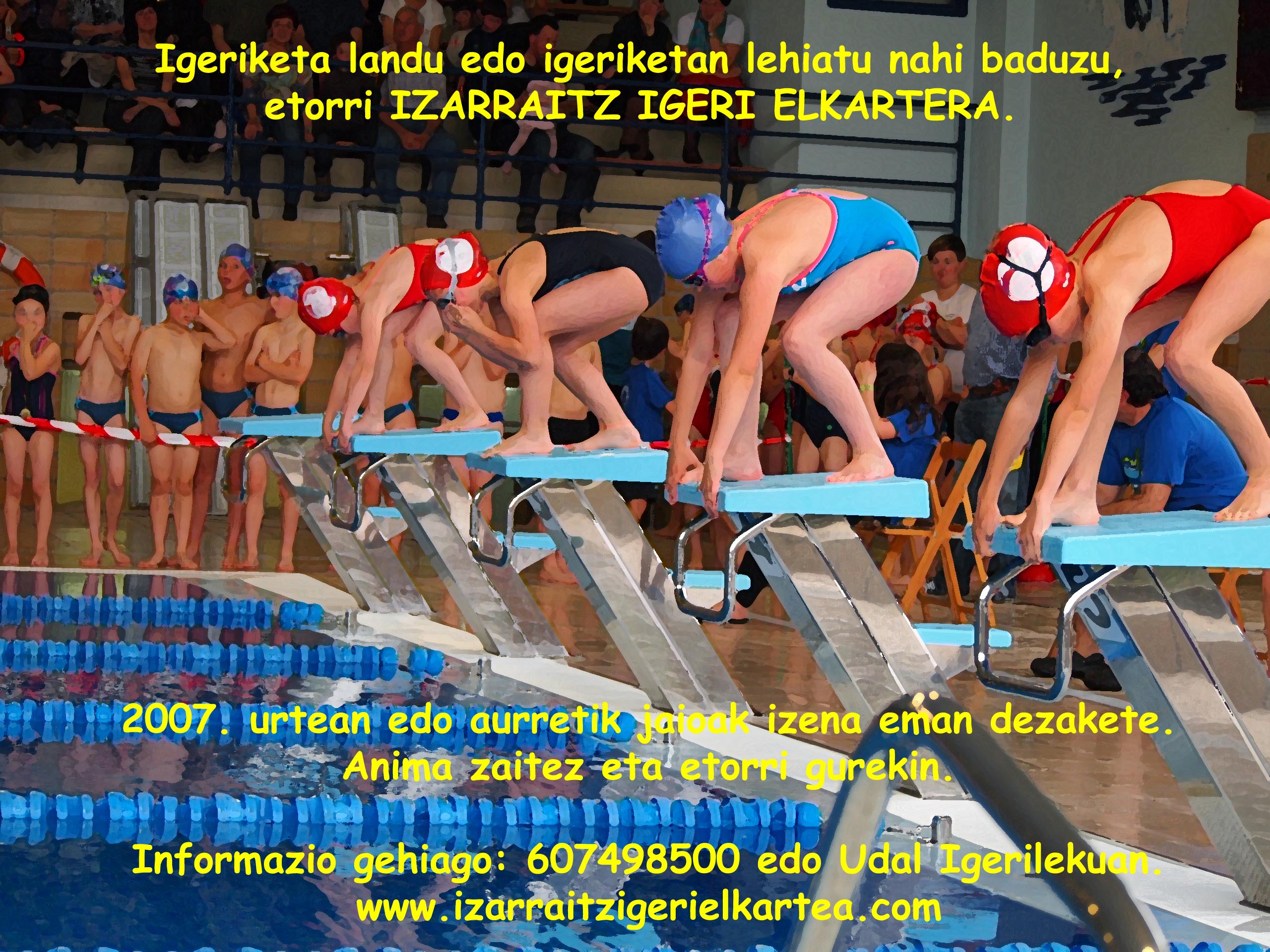 Bestalde, Izarraitz Igeri Elkartean hasi nahi duenak, bai igeriketa lantzeko edo lehiaketetarako prestatzeko, hemen harremanetan jartzeko bideak: