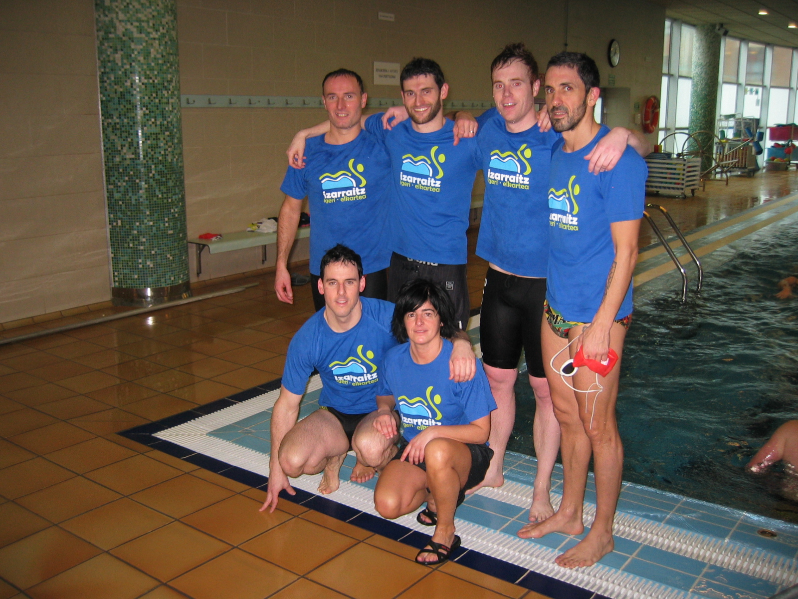 Asier Oiartzabal ‘Disdira’ izan ezik, hau triatloitik dator, beste bostak igeri mundua ezagutzen zuten. Hala ere, irteerako epaileak txistua jo bitartean, buruan bueltaka izan zituzten, urduritasuna, frogak ondo egiteko asmoak, beldurrak, eta abar. Gero uretan, Izarraitzekoek, oso maila ona erakutsi zuten.