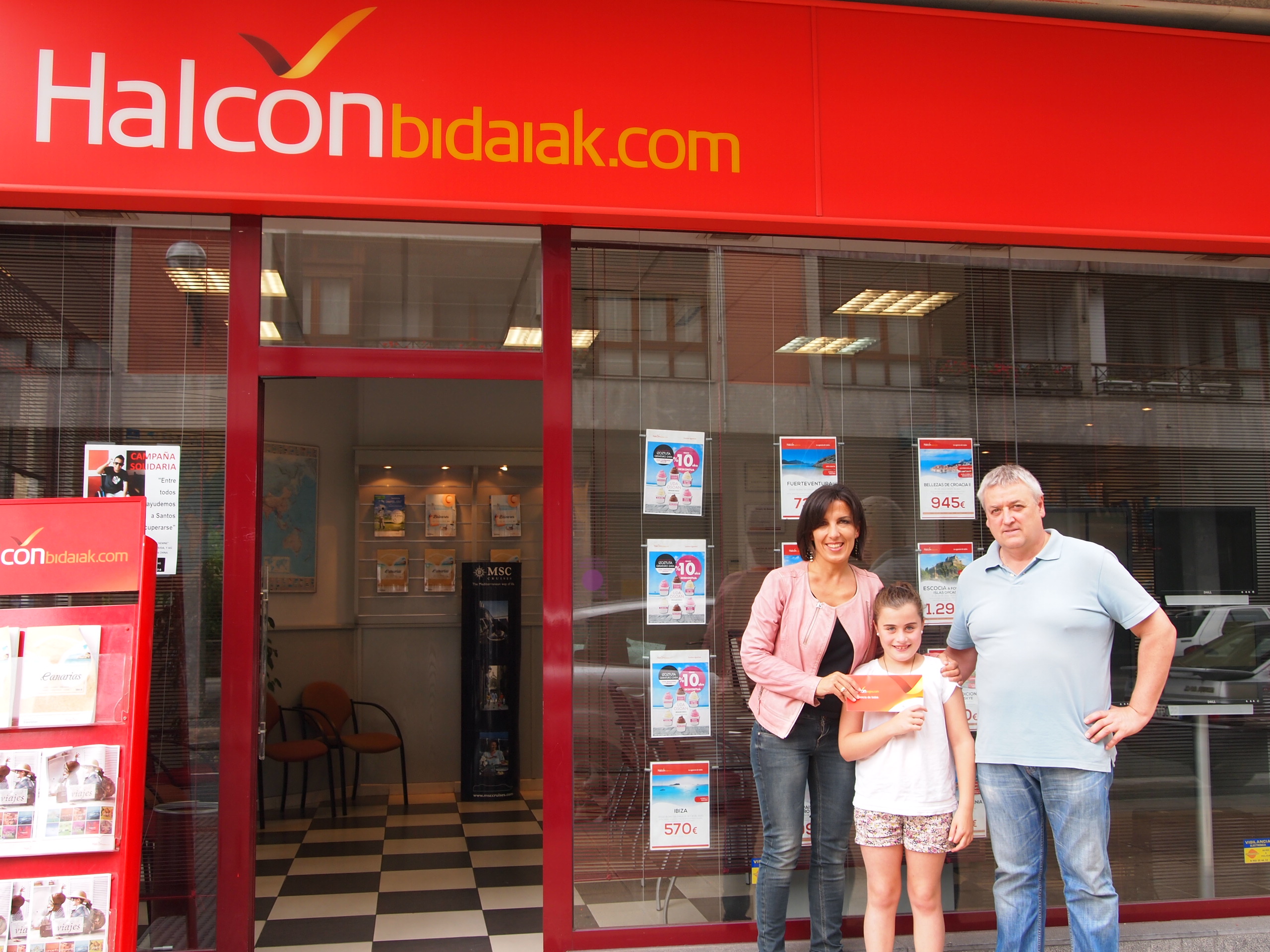 Gaur jaso du Halcon Bidaiak bulegoan Kanariar uharteetara bi lagunentzako astebeteko bidaia, Maite Lazkano Halcon Bidaiakeko arduraduna eta Joxemai Etxeberria Izarraitzeko ordezkariaren eskutik.