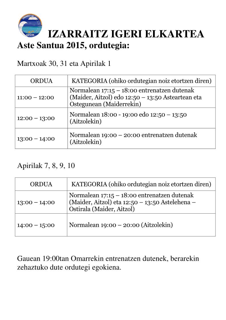 Aste santuko ordutegia
