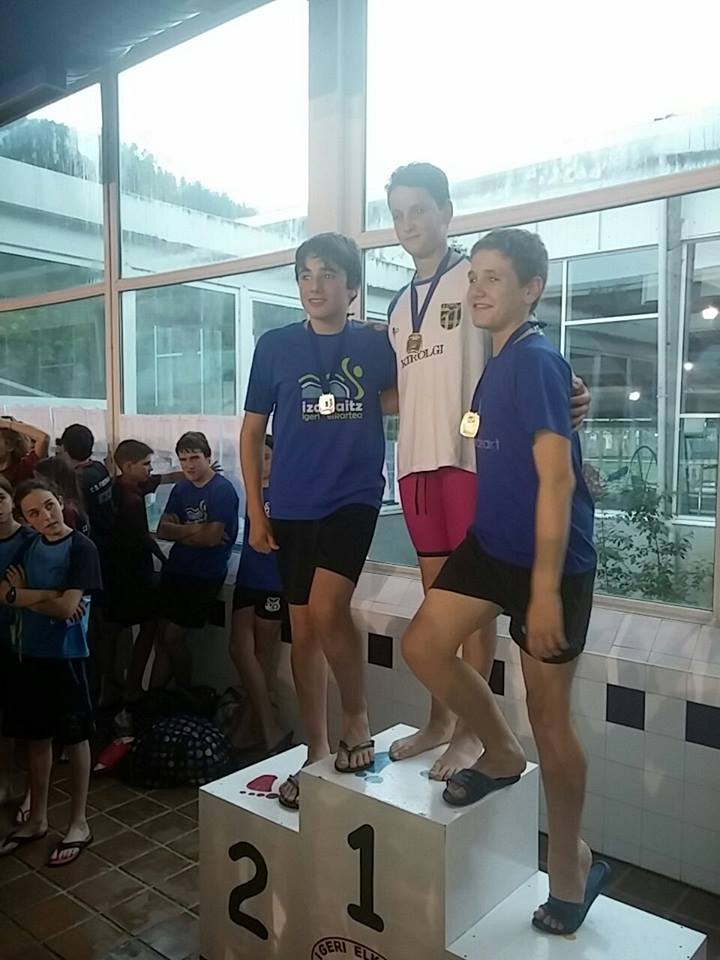 Igandean, berriz, Gipuzkoako Eskolarteko Txapelketa jokatu zen, eta bertan izan ziren 2001 eta 2002. urtetan jaiotako mutilak eta 2003. urteko neskak.Azpeitiko bi igerilarik hartu zuten parte: Iñaki Etxeberriak eta Joanes Astigarragak. Hauek ere bikain aritu ziren txapelketa guztian. Iñakik bi urrezko domina lortu zituen eta Joanesek berriz, zilarrezko domina bat eta brontzeko beste bat.