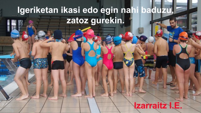 Lehen Hezkuntzako 3, 4, 5 eta 6. mailako ikasleek igeri-topaketa izango dute Azpeitiko Igerilekuan. Uretako jolas ezberdinak egiteko aukera izango dute gure taldeko ordezkarien gidaritzapean. Ikasleak ondo pasatzea eta aldi berean igeriketarako zaletasuna bultzatzea izango dira gure helburuak.