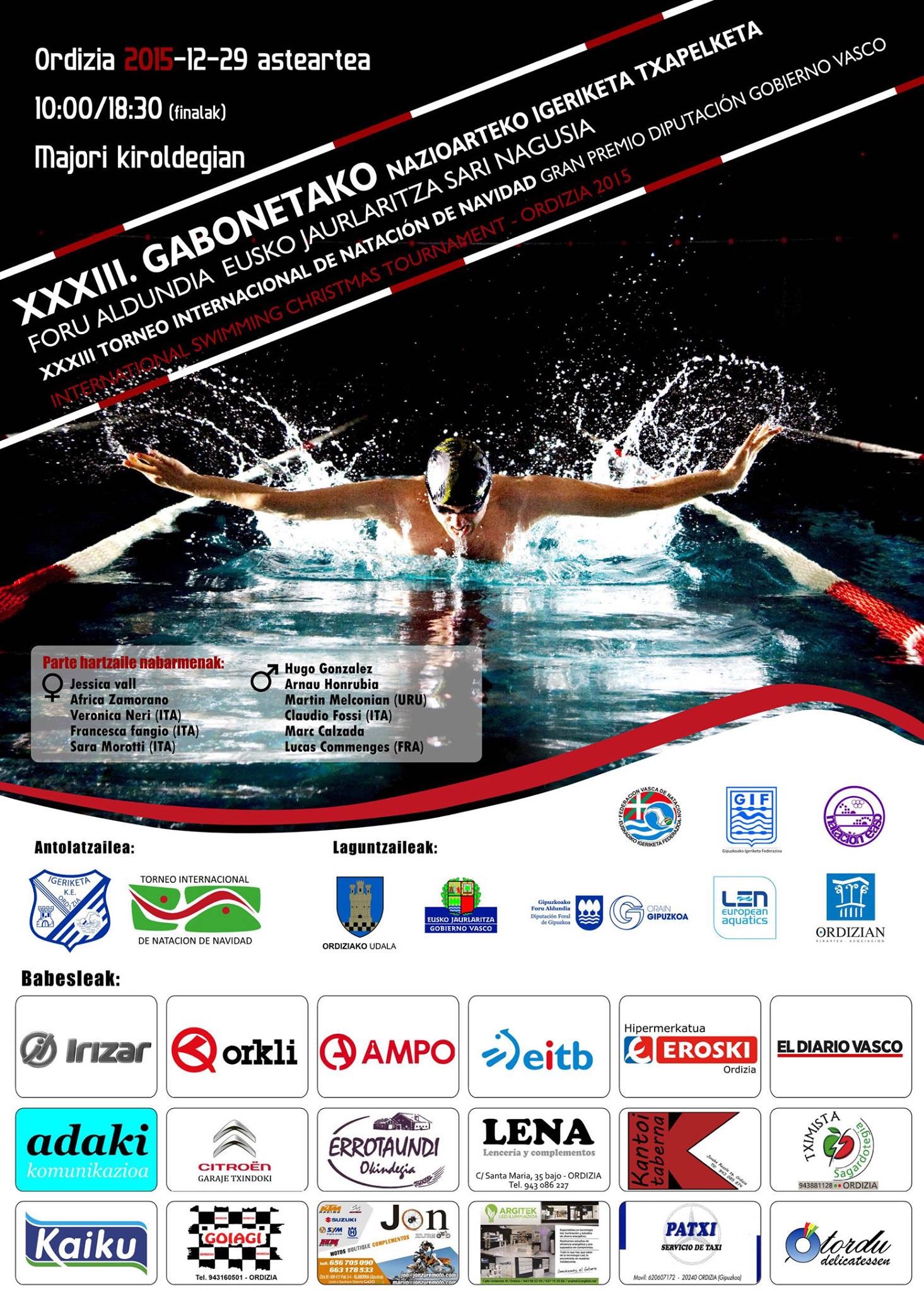 Datorren asteartean, abenduak 29, Nazioarteko XXXIII. Eguberri Txapelketa Foru Aldundia Eusko Jaurlaritza Sari Nagusia jokatuko da Ordizian. Azpeititik hamahiru igerilari joango dira parte hartzera eta proba hauetan lehiatuko dira: