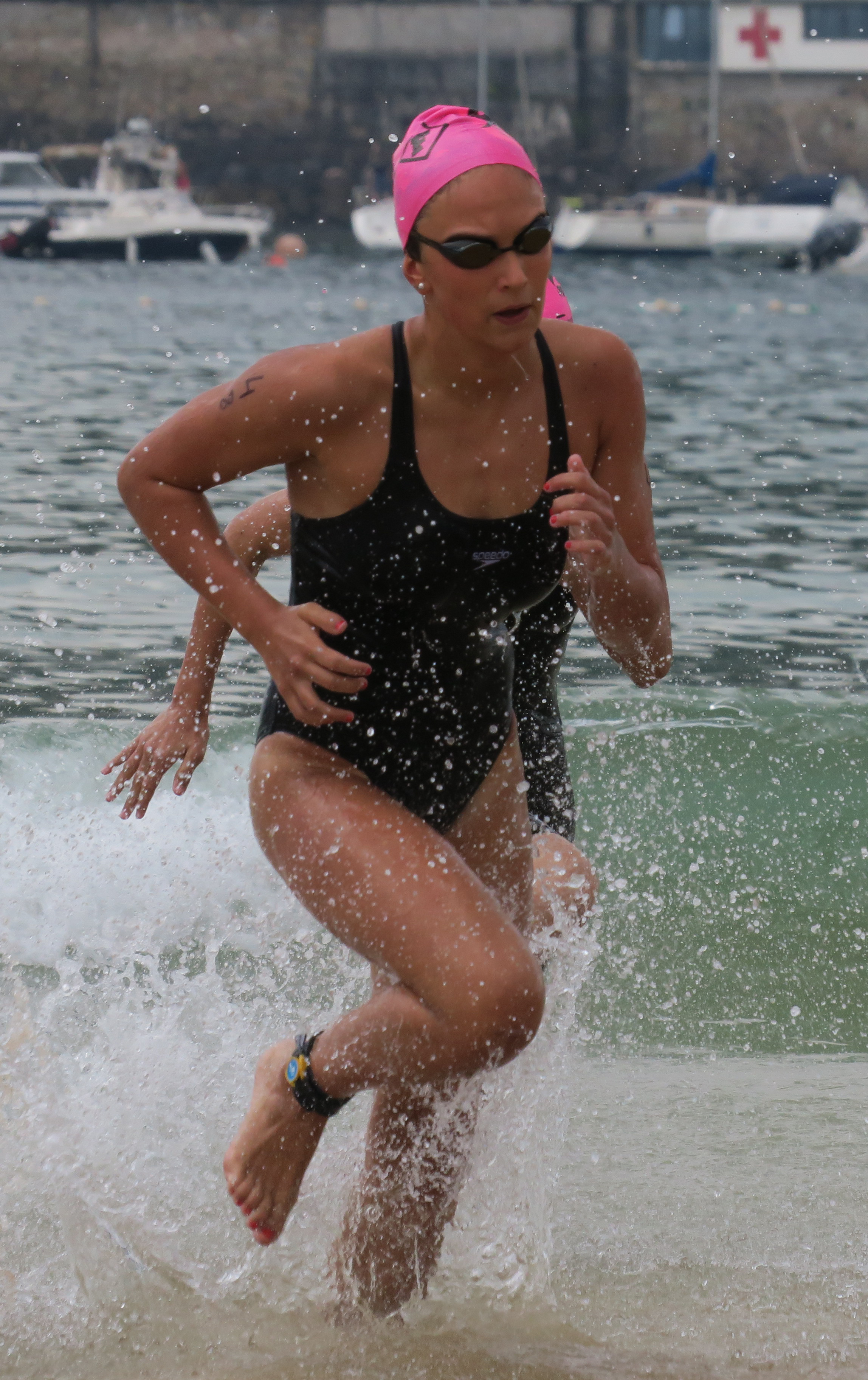 Helduek, Zurriolako hondartzan hasi eta Kontxako hondartzaraino igeri egin zuten. Atzo, azken bi urtetan ez bezala, itsasoak ohiko ibilbidea egiten utzi zuen denon gozamenerako.
