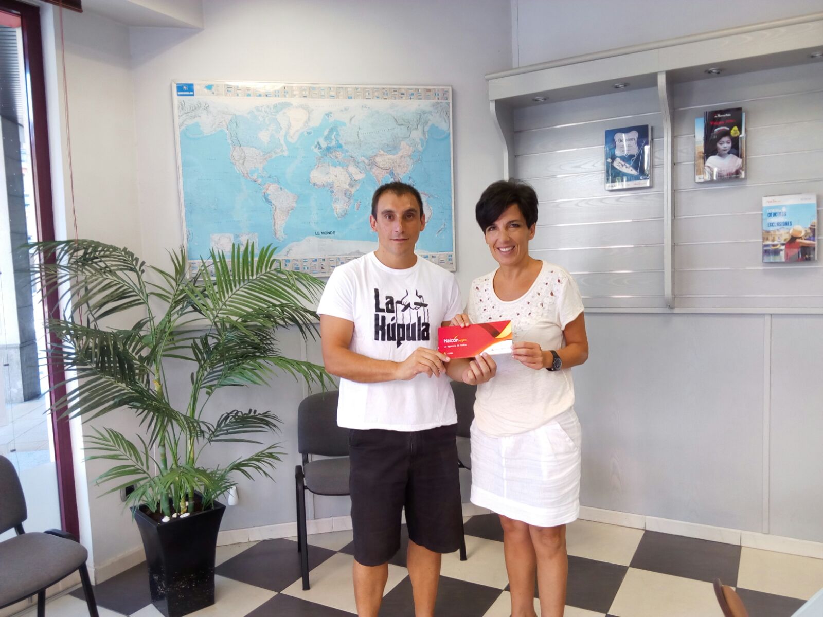 Gaur, asteazkena, jaso du saria Julenek Halcon Bidaiak-en bulegoan; Kanariar Uharteetara bi lagunentzako astebeteko bidaia irabazi du, eta Maite Lazkano Azpeitiko Halcon Bidaiakeko arduradunaren eskutik jaso du saria.