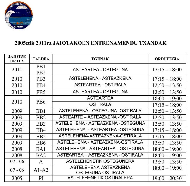 Itsas zeharkaldien denboraldia bukatzear dagoen honetan, astelehenean, irailak 11, hasiko dira Izarraitz Igeri Elkarteko igerilariak 2017-2018 denboraldia prestatzeko lanetan, igerilekuan. Argazkian gaztetxoen ordutegiak eta txandak. Helduek eta masterrak iazko ordutegia izango dute.