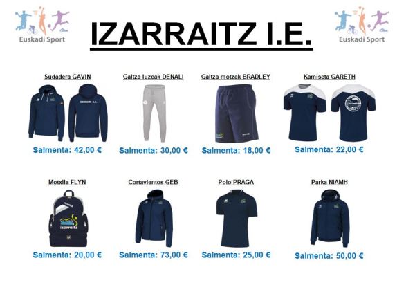 Gabonak gerturatzen ari direla eta gogorarazi nahi dizuegu, Izarraitz I.E.ko zale guztiei, Izarraitz Igeri Elkarteko ekipazioa ( lehorreko arropak, bañujantziak, txanoak, ea.) Euskadi Sport dendan aurkituko duzuela.