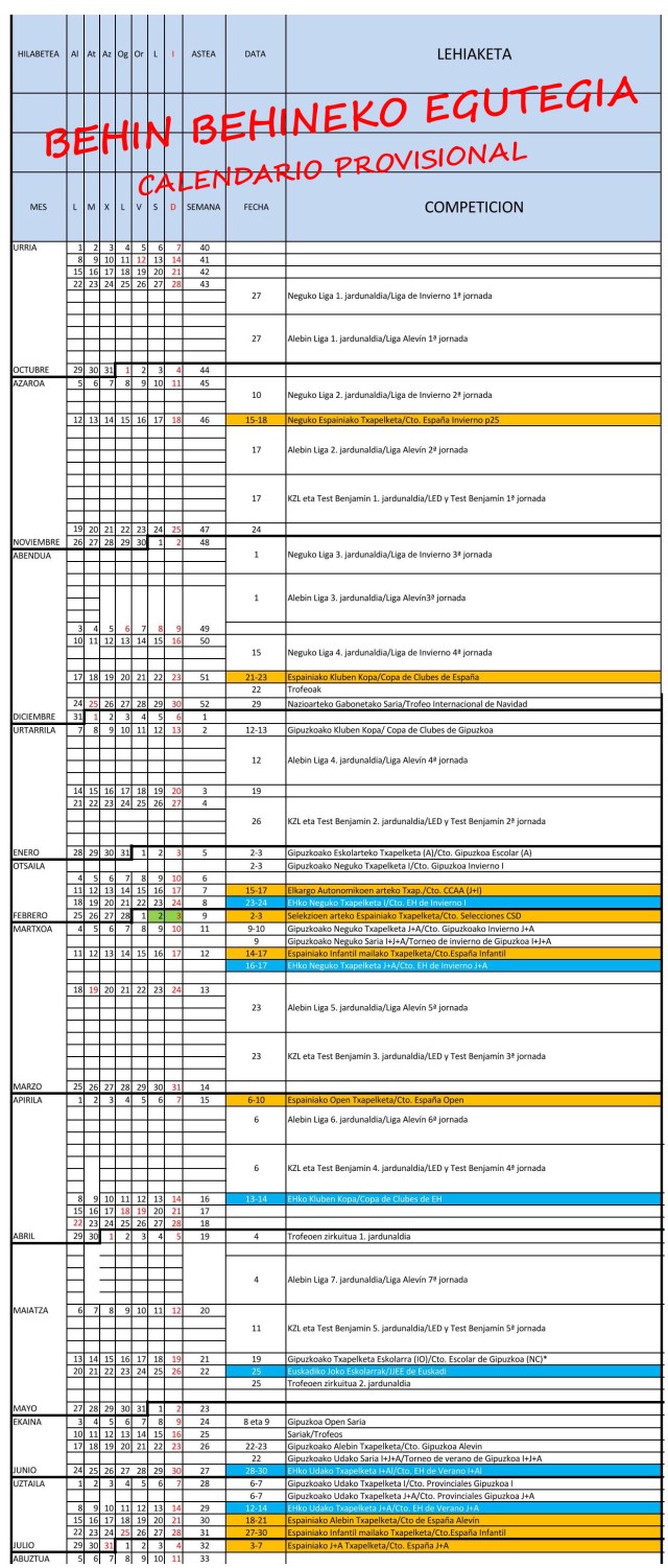 Igeriketako BEHIN BEHINEKO egutegia