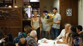 21:15ean, Ongi Etorri jatetxean elkartu ginen ia 100 lagun afaltzeko. Afalondoan momentu hunkigarriak bizi izan genituen. Lehenik, Ander Idoetari, Jurdan Arakistaini, Iker Aizpururi eta Lander Uriari Izarraitzeko txanoak eman genizkion, hemendik aurrera, Izarraitz Igeri Elkartea igeriketa inklusiboko taldea izango baita.