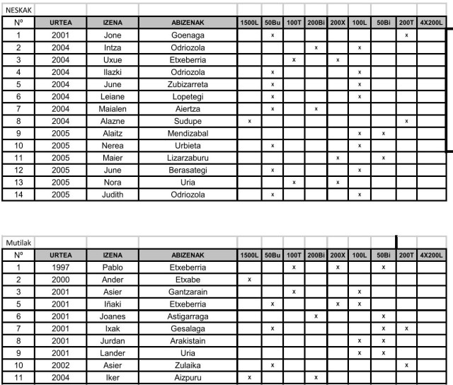 Hona hemen igerilariak eta probak:
