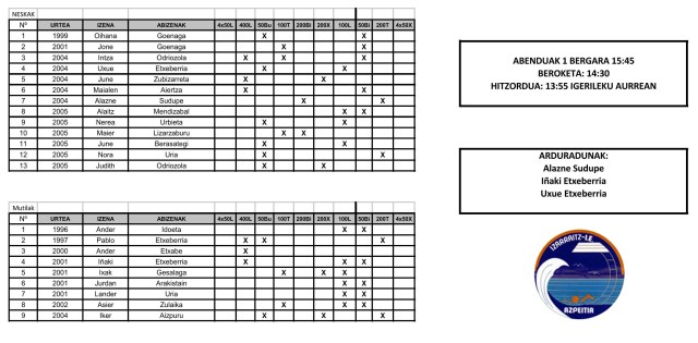 Bestalde, Izarraitz Igeri Elkarteko alebinek Azpeitiko Udal igerilekuan izango dute hitzordua. Alebinek baita ere, denboraldiko 3. jardunaldia izango dute. Azpeitiko lehiaketa, arratsaldeko 16:00tan hasiko da.