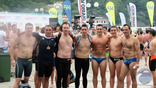 Ondoren, 11:30etan hasi zen helduen zeharkaldia Getariako portuan. 3.100 igerilariak zortzi taldetan atera ziren, aurrez eginiko denboraren arabera. Izarraitzeko 35 bat igerilarik hartu zuten parte, eta ia guztiak oso gustura gelditu ziren lortutako denborekin, nahiz eta itsasoa nahiko nahastuta aurkitu zuten igeriketarako.