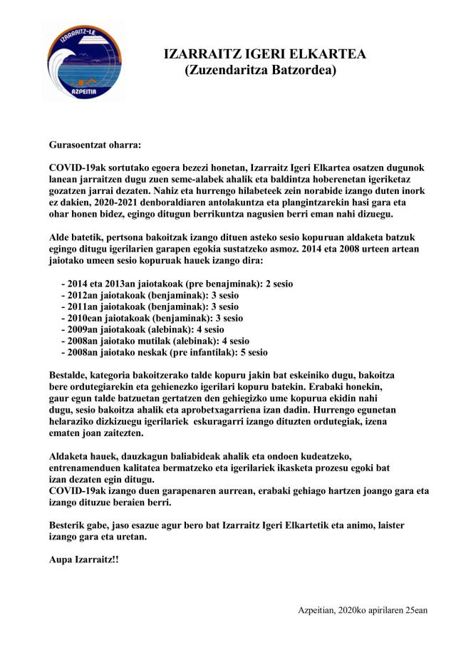 Salbe Auzoa, 13 (Udal Igerilekuak) 20730 AZPEITIA (Gipuzkoa) Tel.607498500 izarraitzigerielkartea@gmail.com
