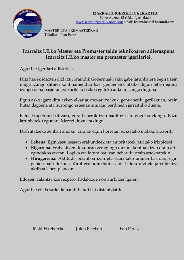 Adierazpena Master eta Premaster igerilariei