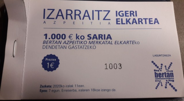 Saria, Bertan Azpeitiko Merkatari Elkartearen laguntzarekin, 1000€ ko bonoa izango da.