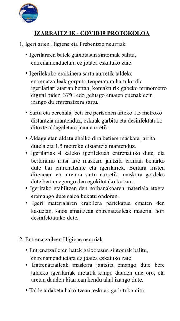 Izarraitz Igeri Elkarteko protokoloa COVID-19