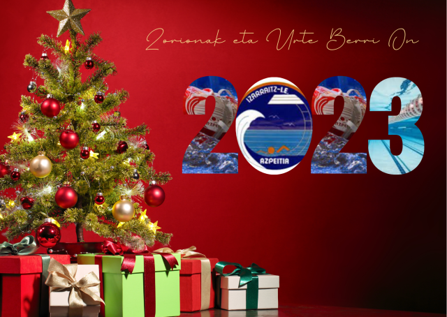 Izarraitz Igeri Elkartea osatzen dugun guztion partetik, jai zoriontsuak eta 2023.urte arrakastatsua opa dizkizuegu. Ondo pasa gabonak!