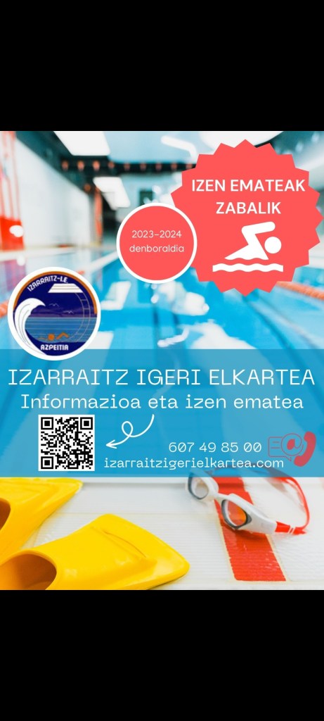 Datorren denboraldian igeriketaz gozatu eta Izarraitz igeri elkarteko kide izan nahi baduzu, ateak zabalik dituzu eta beso zabalik hartuko zaitugu.