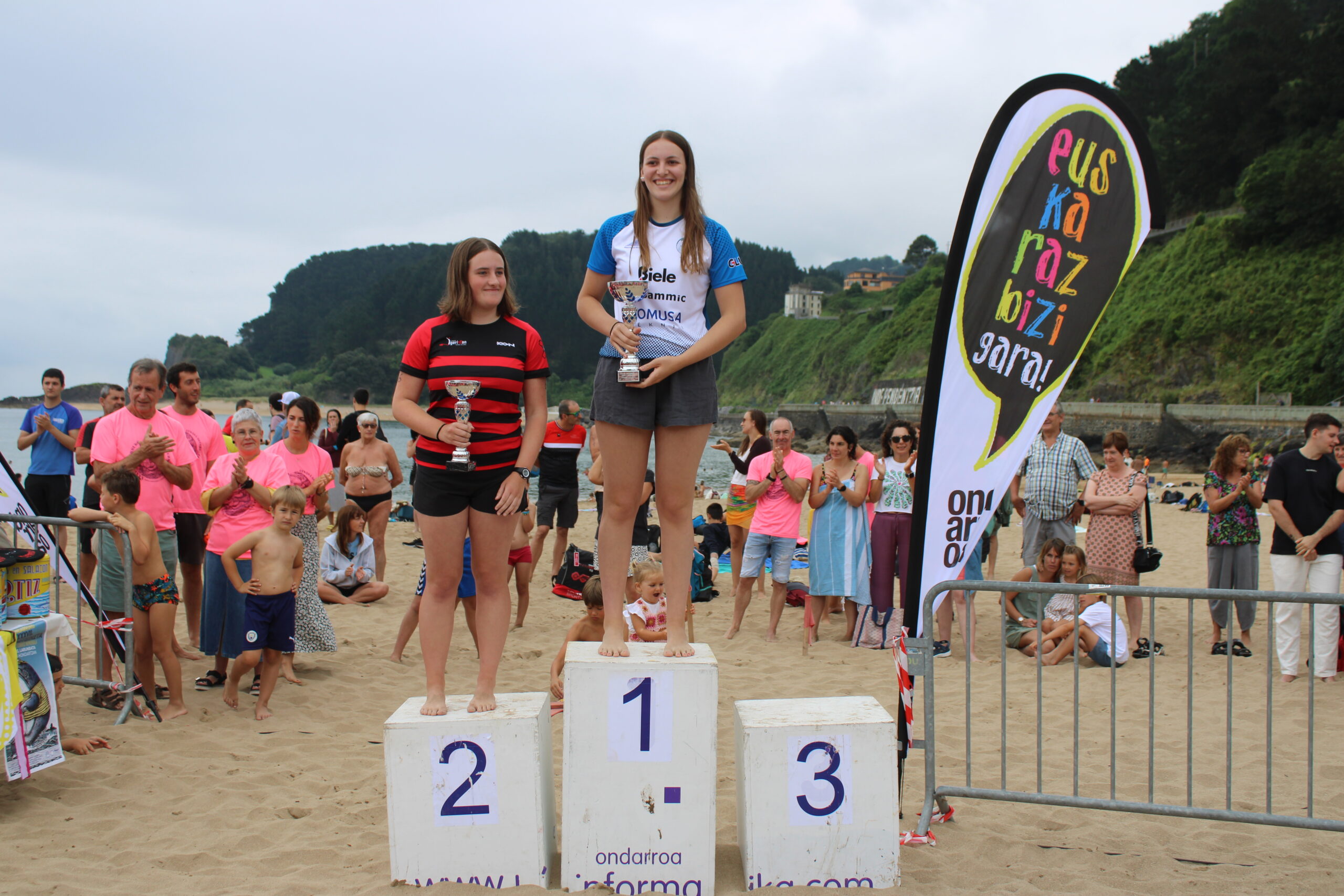 Ondoren, nagusiak sartu dira itsasora, beraien 1600m-ko lasterketa osatzeko. Distantzia honetan ere, ordezkaria izan dugu podiumean. Anne Sagarmendi hirugarren emakumezkoa izan da helmugan eta junior mailan txapeldun izendatu da.
